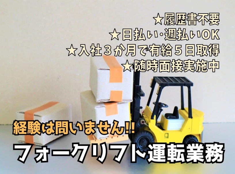 ◆ 湖南市 ◆大手物流倉庫で 【リフトオペレーター業務】 ◆ 年齢・経験など一切問いません ◆